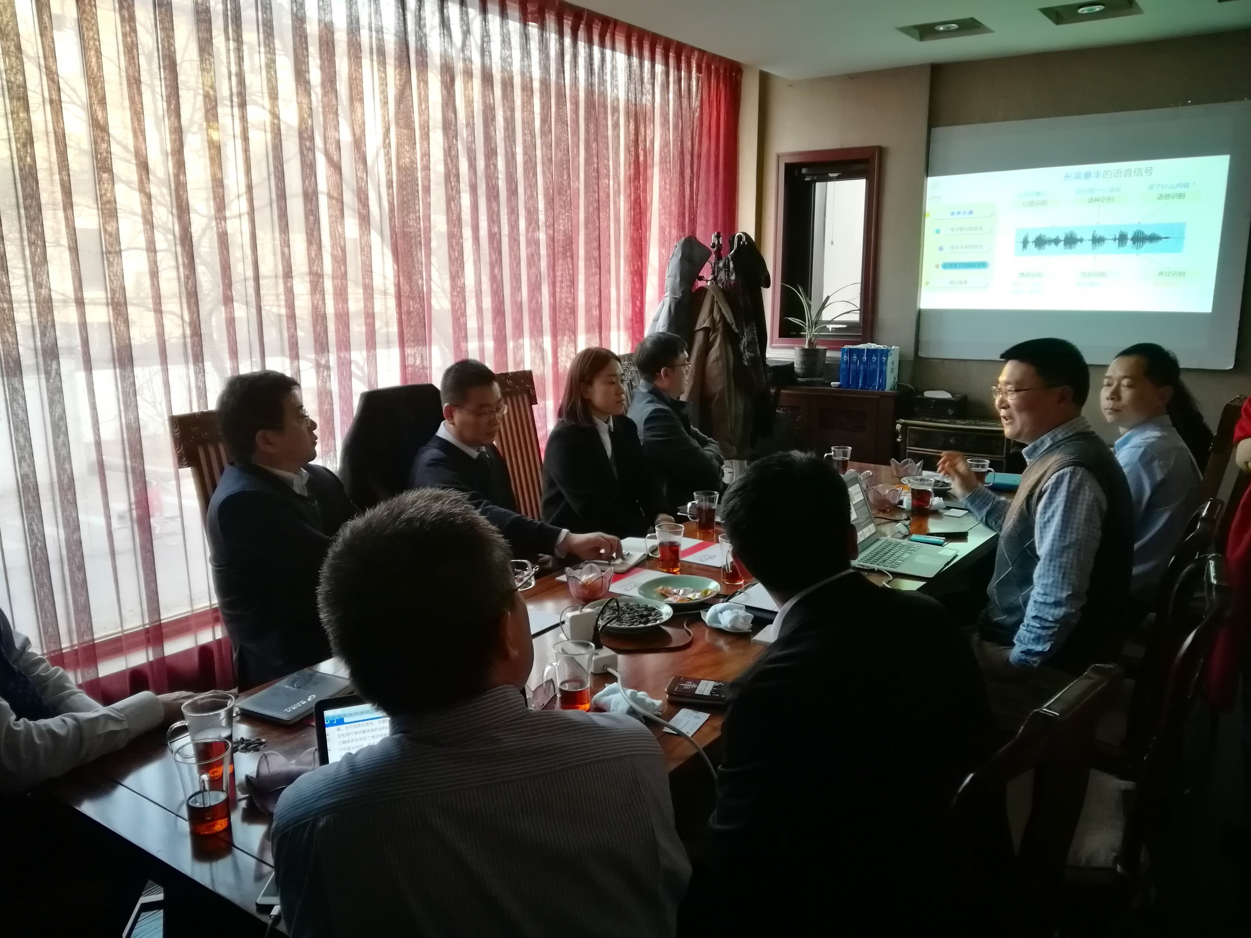 2017年1月11日下午,邢台银行副行长胡锦辉一行与得意音通公司于北京就声纹识别技术在电子银行中的应用进行了交流。得意音通董事长郑方博士全面地介绍了电子银行所面临的安全问题,对各种身份认证技术的安全性、可靠性及实用性进行了全面分析比较,介绍了得意音通声纹识别技术在互联网金融中的应用和领先优势。